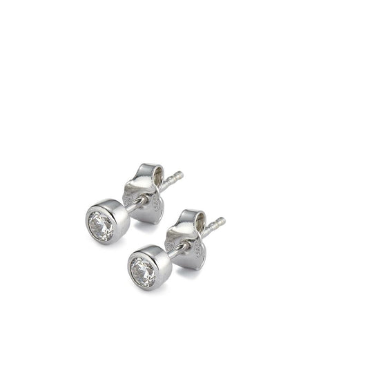 Orecchini a bottone Argento Zirconia rodiato Ø5 mm