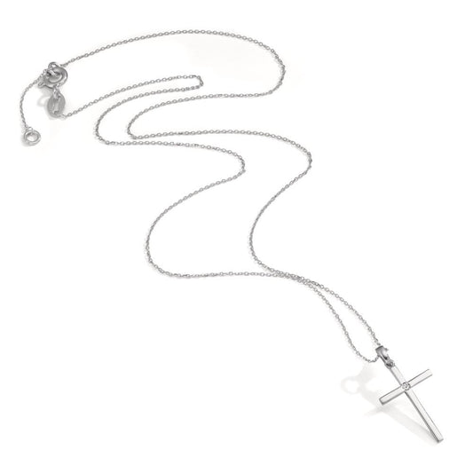 Collana Oro bianco 750/18 carati Diamante 0.01 ct, w-si Croce 40-42 cm