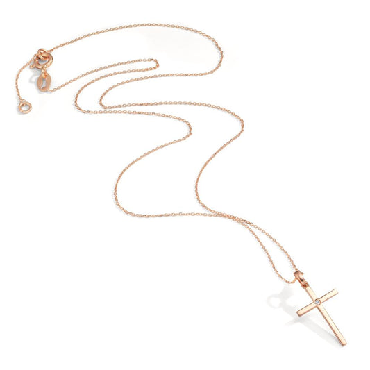 Collana Oro rosso 750/18 carati Diamante 0.01 ct, w-si Croce 40-42 cm