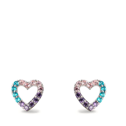 Orecchini a bottone Argento Zirconia colorato rodiato Cuore Ø7 mm