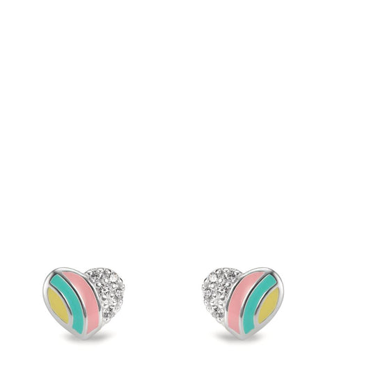 Orecchini a bottone Argento Zirconia 10 pietra smaltato Cuore Ø5.5 mm