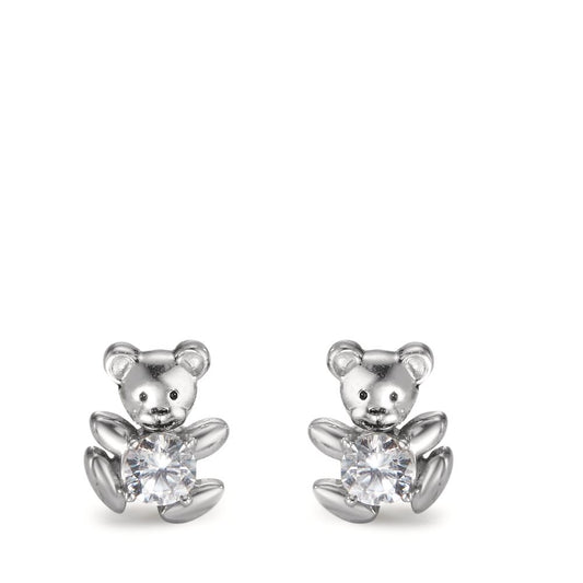 Orecchini a bottone Argento Zirconia bianco, 2 pietra rodiato Orsacchiotto di peluche