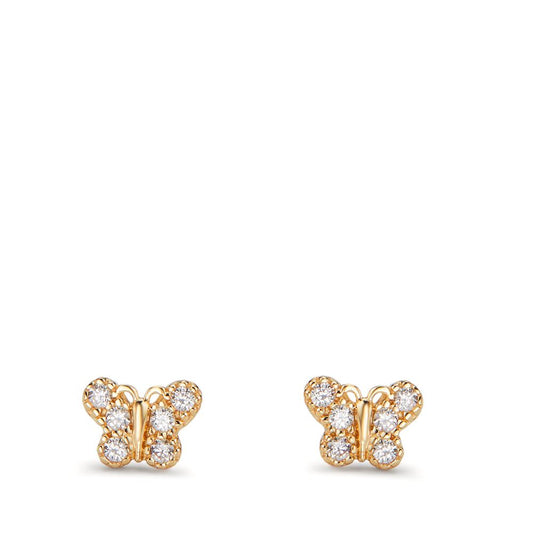 Orecchini a bottone Oro giallo 585/14 kt Zirconia 12 pietra Farfalla Ø5 mm