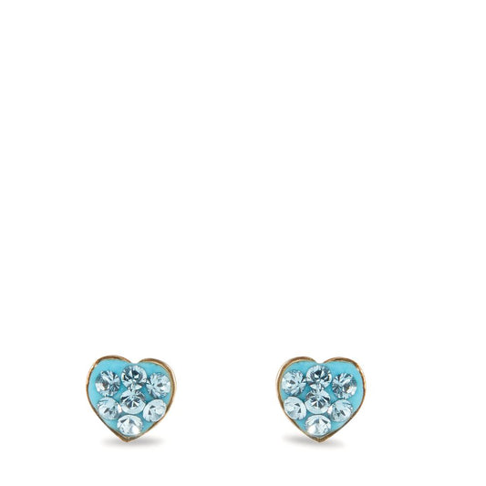 Orecchini a bottone Oro giallo 585/14 kt Cristallo blu, 14 pietra Cuore Ø4.5 mm