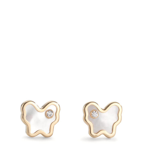 Orecchini a bottone Oro giallo 375/9K Zirconia 2 pietra Madreperla bianco Farfalla Ø6.5 mm