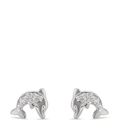 Orecchini a bottone Oro bianco 585/14 kt Cristallo 14 pietra Delfino Ø6 mm