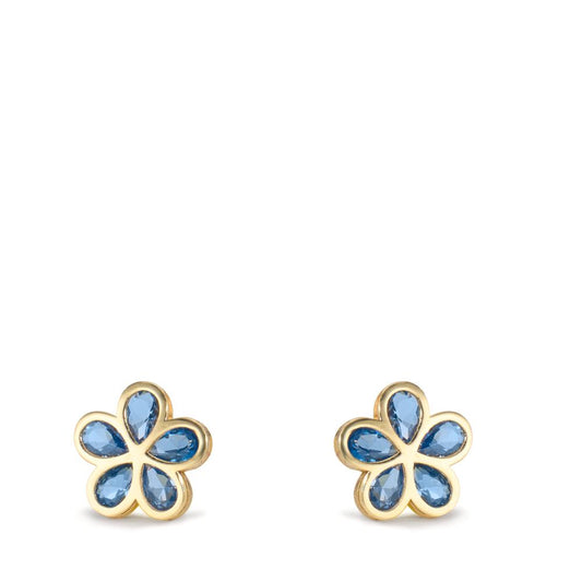 Orecchini a bottone Oro giallo 375/9K Zirconia blu, 10 pietra Fiore Ø7.3 mm
