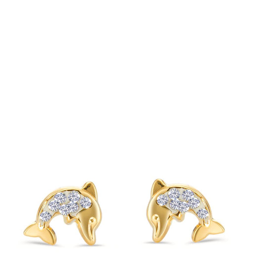 Orecchini a bottone Oro giallo 585/14 kt Cristallo 14 pietra Delfino Ø6 mm