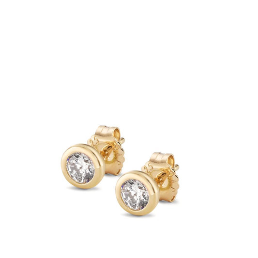 Orecchini a bottone Argento Zirconia 2 pietra giallo dorato Ø9.5 mm