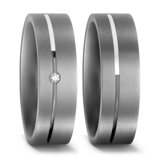 Anello del partner Titanio, Argento Diamante 0.02 ct, w-si