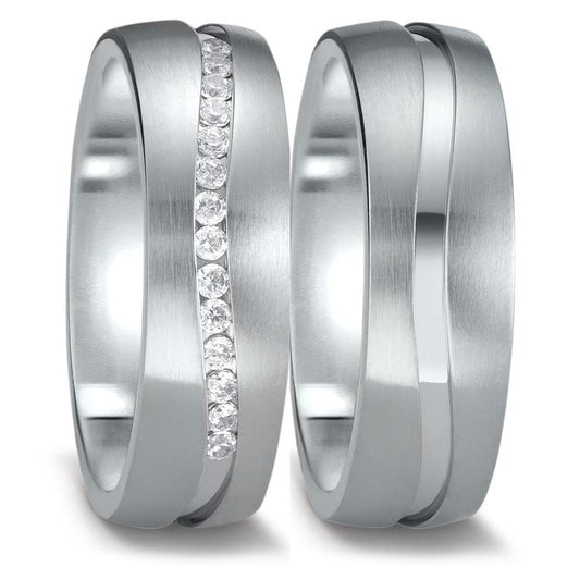 Anello del partner Acciaio inossidabile, Carbonio Zirconia bianco, 6 pietra