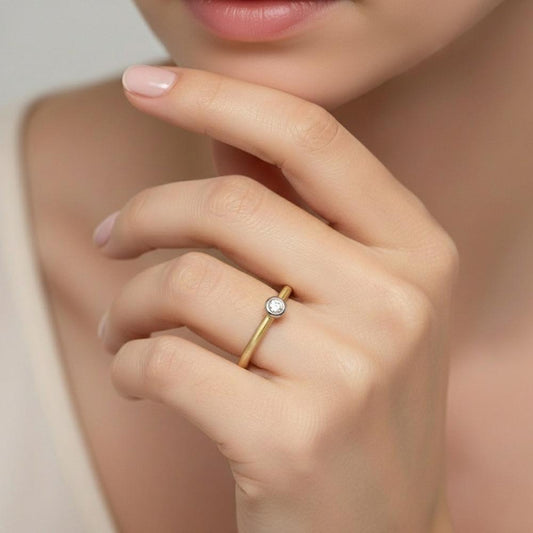 Anello solitario Oro giallo 750/18 carati Diamante 0.15 ct, w-si