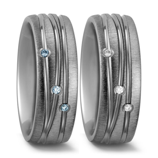 Anello del partner Titanio Diamante blu, 0.03 ct, 3 pietra, w-si