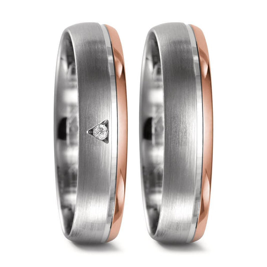 Anello del partner Titanio, Oro rosso 750/18 carati Diamante 0.05 ct, w-si