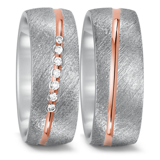 Anello del partner Acciaio inossidabile, Oro rosso 750/18 carati Diamante 0.07 ct, 7 pietra, w-si