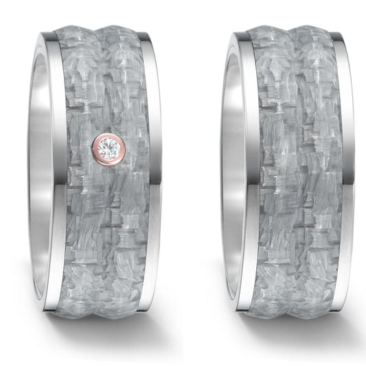 Anello del partner Titanio, Carbonio, Oro rosso 750/18 carati Diamante 0.02 ct, w-si