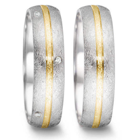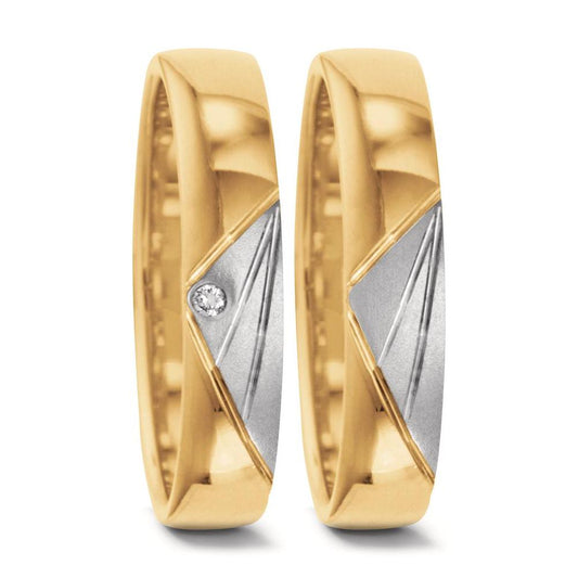 Anello del partner Oro giallo 750/18 carati, Oro bianco 750/18 carati Diamante 0.01 ct, w-si