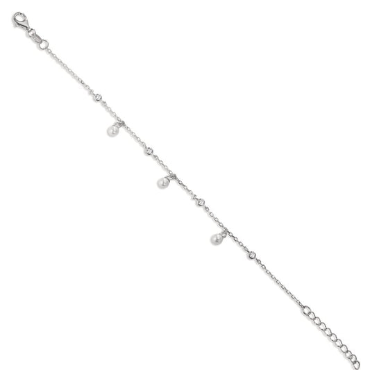 Bracciale Argento Zirconia 4 pietra rodiato [shining Pearls], 3 Perla, 4 mm 16-19 cm