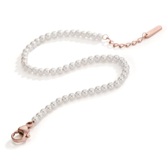 Bracciale Acciaio inossidabile rosa rivestimento IP Perla di conchiglia bianco, 55 Perla, 3 mm 17.5-19.5 cm Ø3 mm