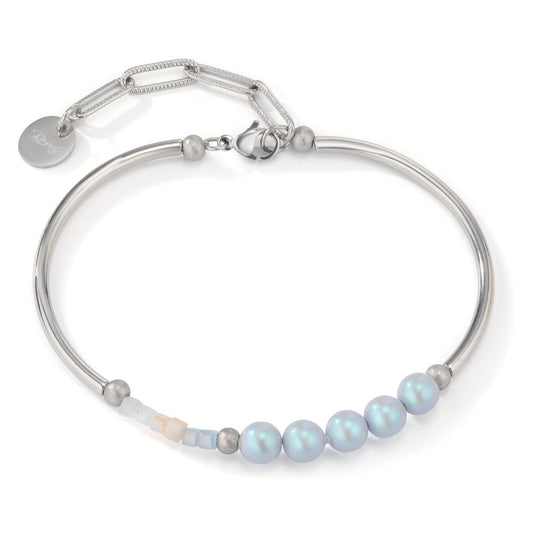Bracciale Acciaio inossidabile Zirconia 6 pietra [shining Pearls] Azzurro, 5 Perla, 6 mm 18-22 cm