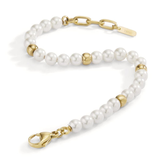 Bracciale Acciaio inossidabile giallo rivestimento IP Perla di conchiglia bianco, 23 Perla, 6 mm Ø6 mm