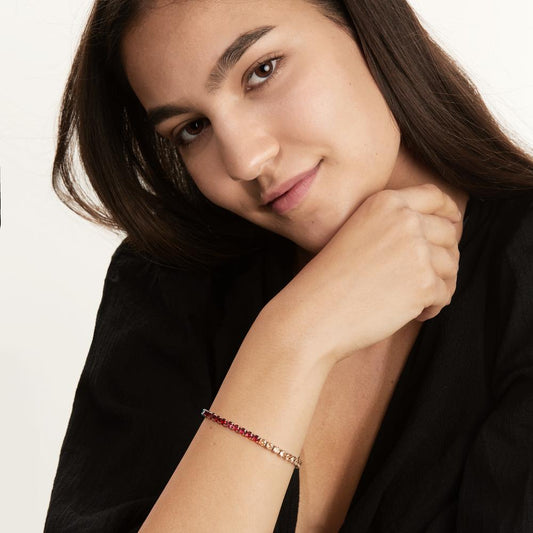 Bracciale Argento Zirconia bordeaux, 14 pietra rodiato Rosa 17-19 cm