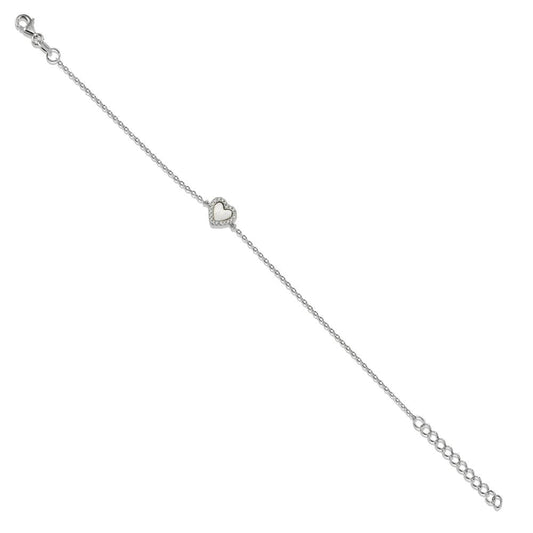Bracciale Argento Zirconia rodiato Madreperla bianco Cuore Ø8 mm