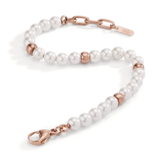 Bracciale Acciaio inossidabile rosa rivestimento IP Perla di conchiglia bianco, 23 Perla, 6 mm Ø6 mm