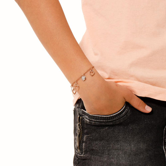 Bracciale Argento rosa dorato Cuore 19 cm Ø9 mm