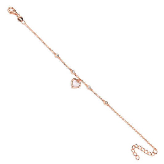 Bracciale Argento Zirconia 4 pietra rosa dorato Madreperla bianco Cuore