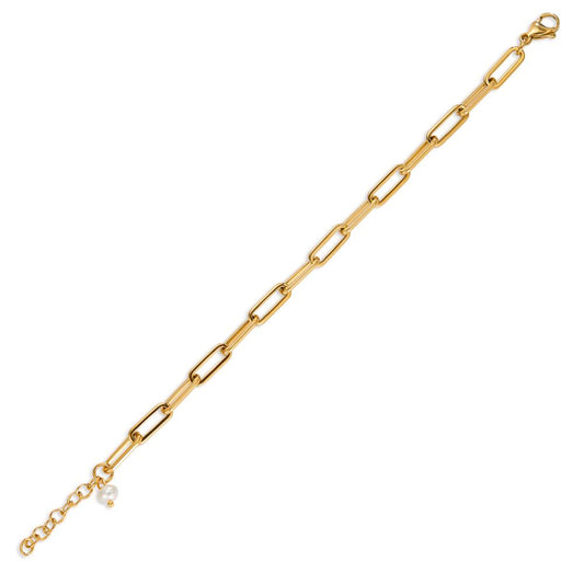Bracciale Acciaio inossidabile giallo rivestimento IP Perla coltivata d'acqua dolce bianco, 4.5 mm 18.5-22 cm