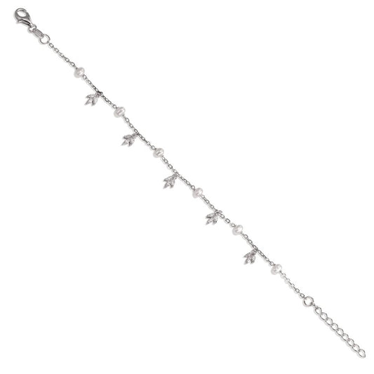 Bracciale Argento Zirconia 15 pietra rodiato Perla coltivata d'acqua dolce bianco, 6 Perla, 3.5 mm 15.5-18.5 cm