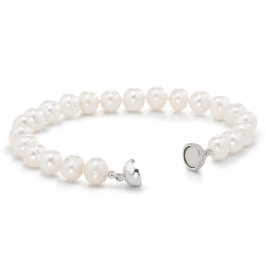 Bracciale Argento rodiato Perla coltivata d'acqua dolce bianco 7-7.5 mm 19 cm
