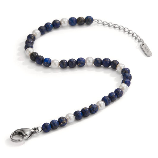 Bracciale Acciaio inossidabile Lapislazzuli Perla di conchiglia bianco, 9 Perla, 4 mm 17.5-19.5 cm Ø4 mm