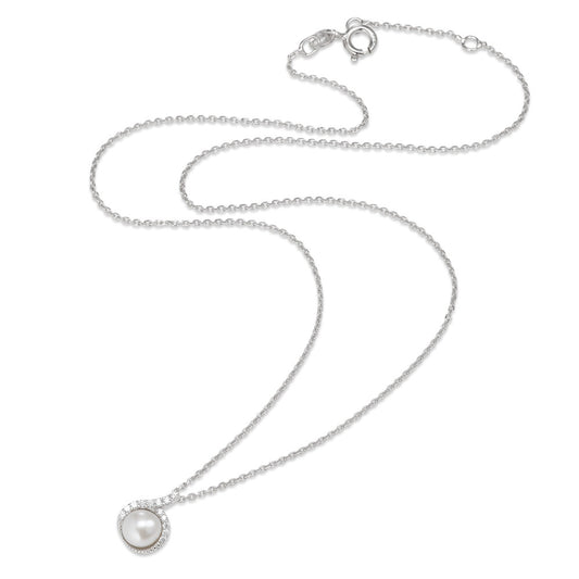 Catena con ciondolo Argento Zirconia rodiato Perla coltivata d'acqua dolce bianco, 5.5 mm 40-42 cm Ø9 mm