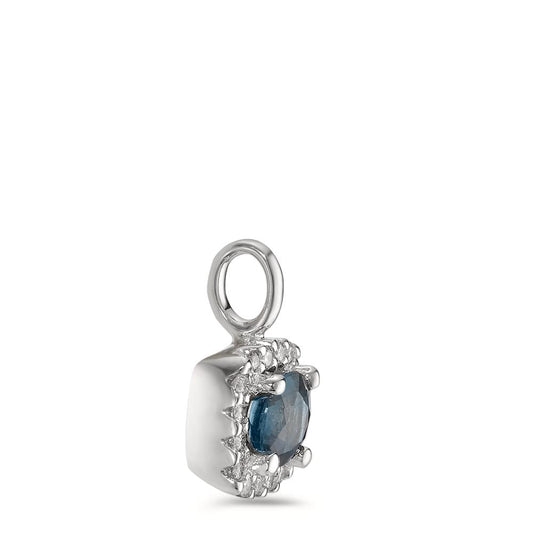 Ciondolo Oro bianco 750/18 carati Zaffiro blu, Diamante bianco, 0.07 ct, 12 pietra, w-si Ø6.5 mm