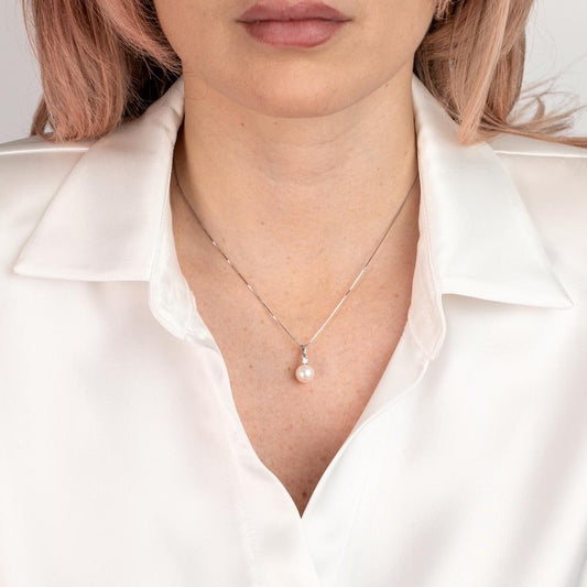 Ciondolo Oro bianco 750/18 carati Perla coltivata d'acqua dolce, 8.5 mm
