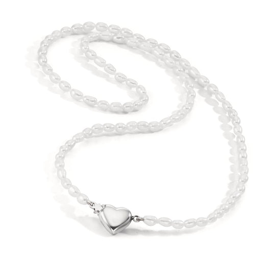 Collana Argento Perla coltivata d'acqua dolce 3-3.5 mm Cuore 43 cm