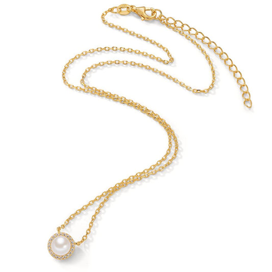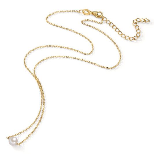 Collana Argento giallo dorato Perla coltivata d'acqua dolce bianco, 6.5 mm 40-45 cm