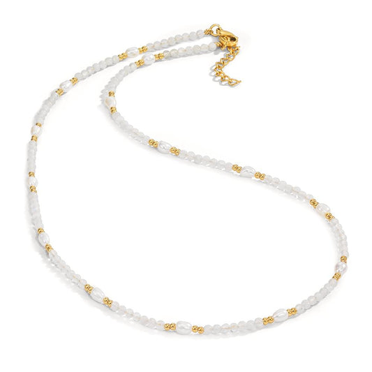 Collana Acciaio inossidabile Pietra di luna bianco, 2.5 mm giallo rivestimento IP Perla coltivata d'acqua dolce, 14 Perla, 3 mm 42-45 cm