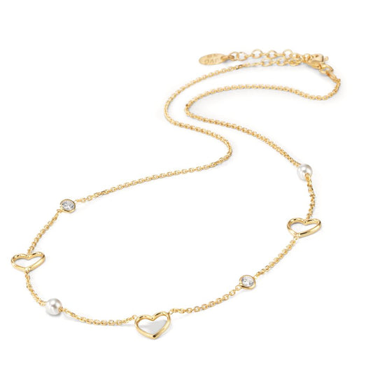Collana Argento Zirconia 2 pietra giallo dorato [shining Pearls], 3 Perla, 4 mm Cuore 40-44 cm