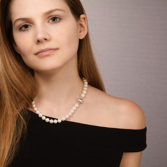 Collana Oro bianco 750/18 carati Perla di Tahiti 9-10 mm 45 cm