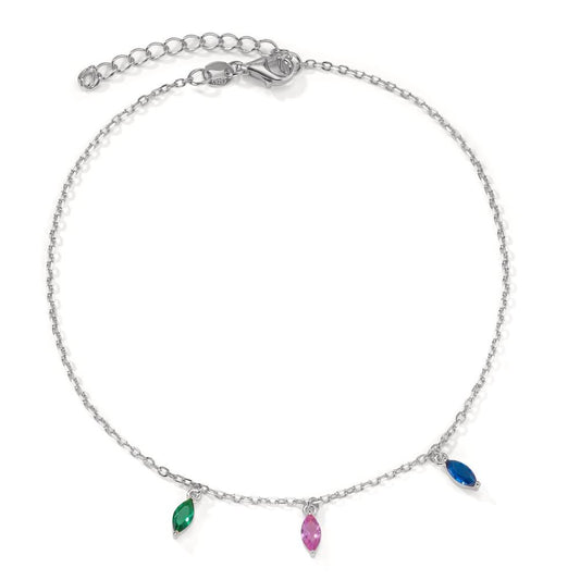 Cavigliera Argento Zirconia 3 pietra rodiato 23-27 cm
