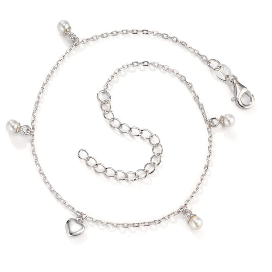 Cavigliera Argento rodiato [shining Pearls], 4 Perla, 3.5 mm Cuore 21-26 cm