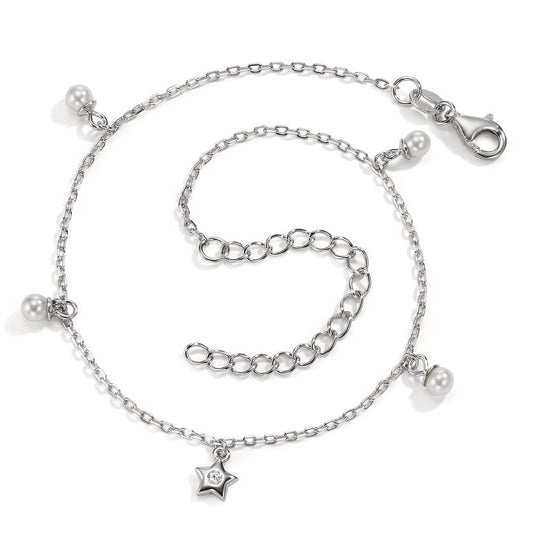 Cavigliera Argento Zirconia rodiato [shining Pearls], 4 Perla, 3.5 mm Stella 20-26 cm