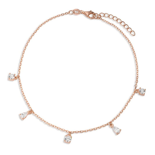 Cavigliera Argento Zirconia 7 pietra rosa dorato 23-28 cm