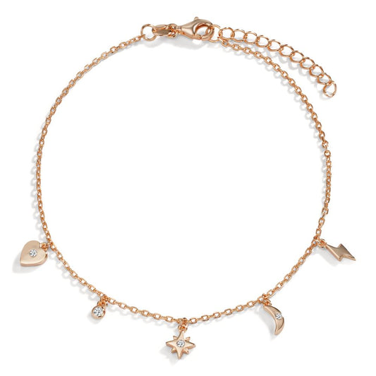 Cavigliera Argento Zirconia 5 pietra rosa dorato 23-27 cm