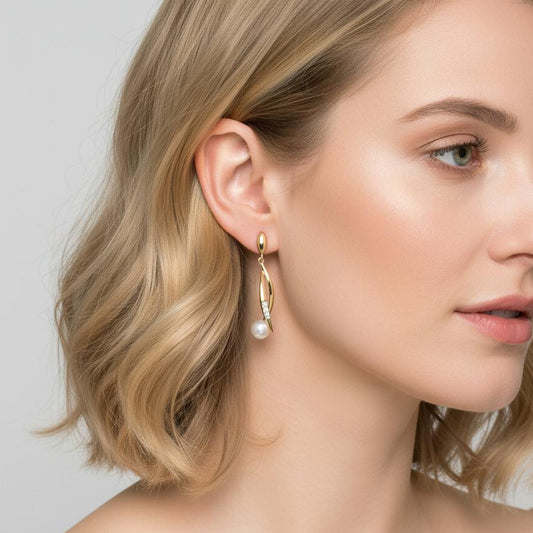 Orecchini Oro giallo 750/18 carati Zirconia Perla coltivata d'acqua dolce bianco, 2 Perla