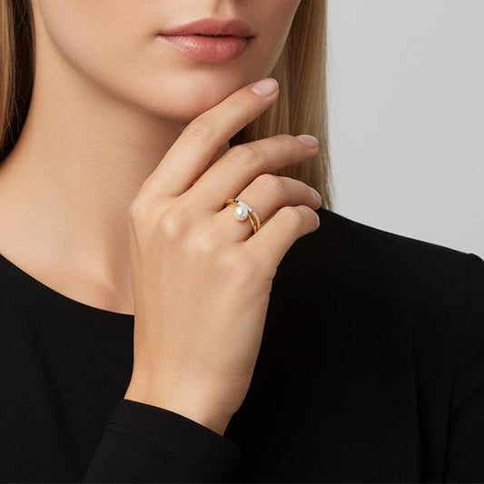 Anello Oro giallo 750/18 carati Zirconia Perla coltivata d'acqua dolce bianco