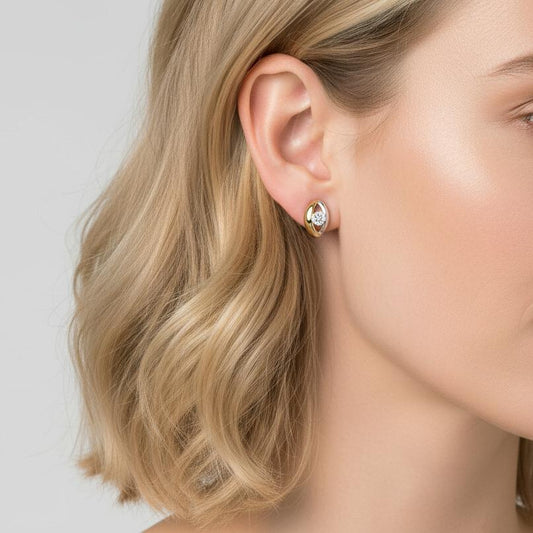 Orecchini a bottone Oro giallo 375/9K Zirconia bicolore
